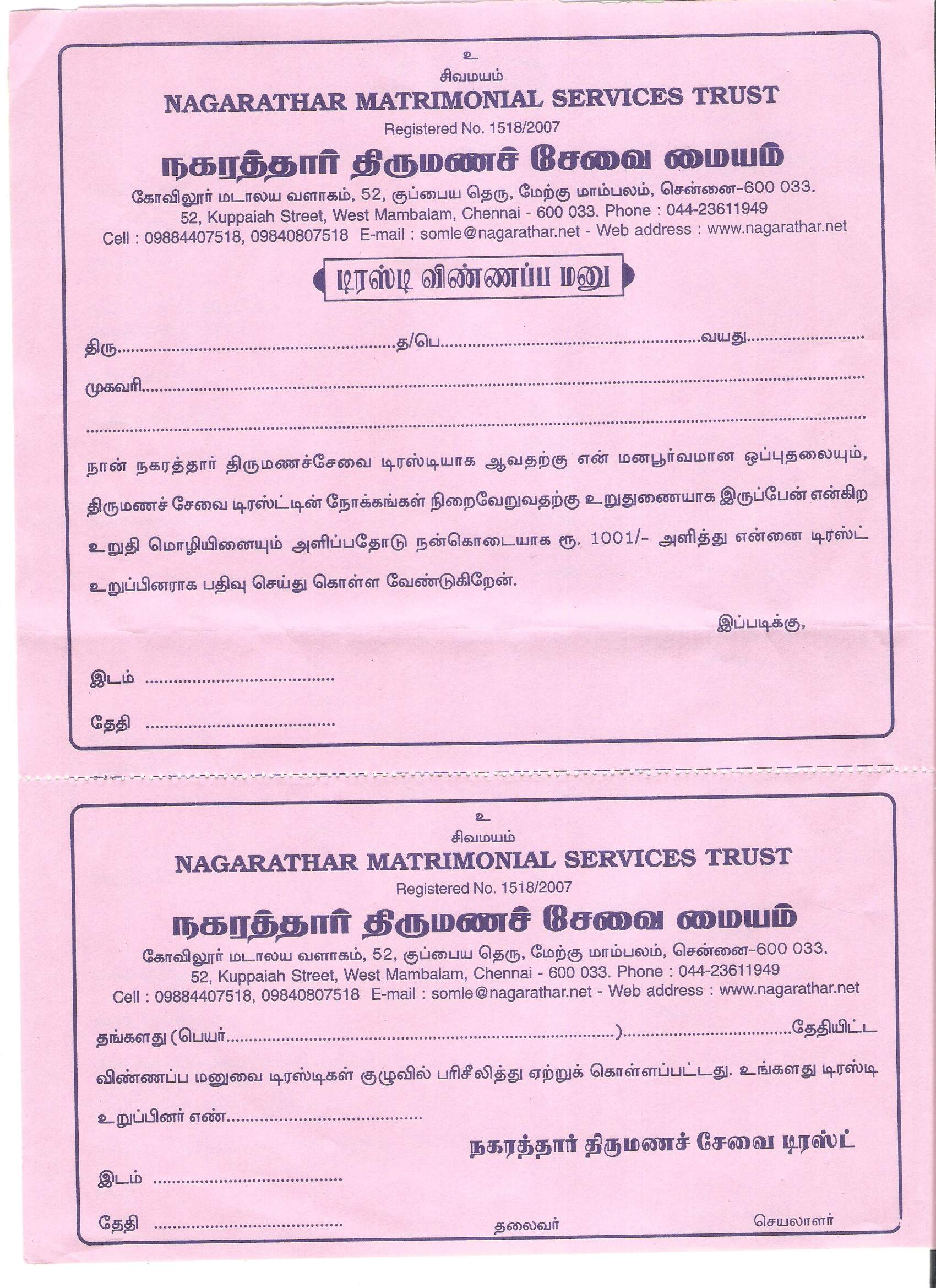 9444272897 & 9840807518 contact@nagaratharmatrimony.in Member Login