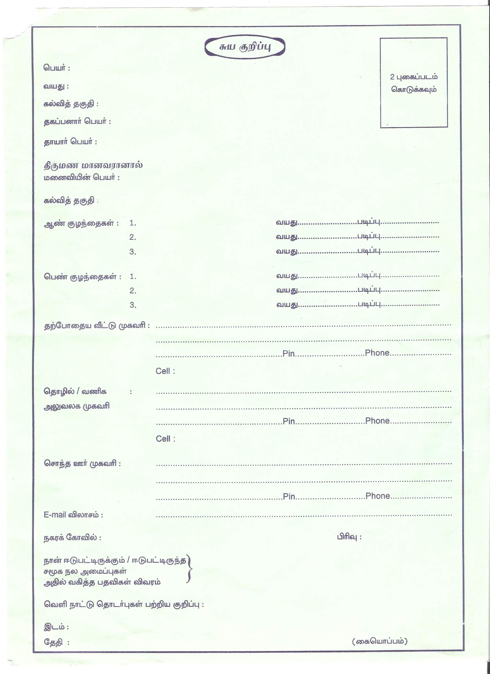 Nagarathar Matrimony Related Forms